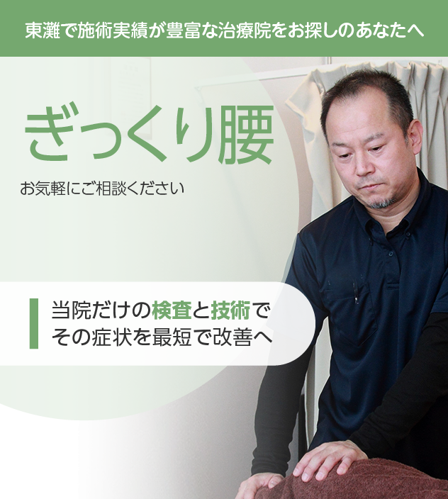 病院やほかの治療院で改善しなかったとしても諦める必要はありません。ぎっくり腰は豊富な施術実績を誇る当院にお任せください。