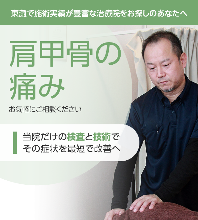 病院やほかの治療院で改善しなかったとしても諦める必要はありません。肩甲骨の痛みは豊富な施術実績を誇る当院にお任せください。