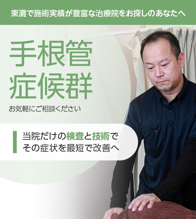 病院やほかの治療院で改善しなかったとしても諦める必要はありません。手根管症候群は豊富な施術実績を誇る当院にお任せください。
