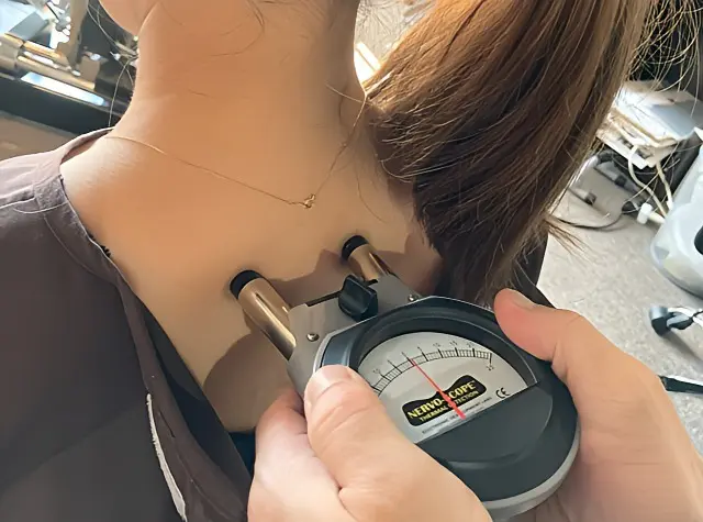 まずはあなたの腕のしびれの原因を明らかにします。原因を取り違えたまま治療を進めてしまっては、一時的に症状は治まったとしても根本改善を見込めないからです。当院では専用機器を使い、しびれの原因となっている神経圧迫の箇所を特定します。