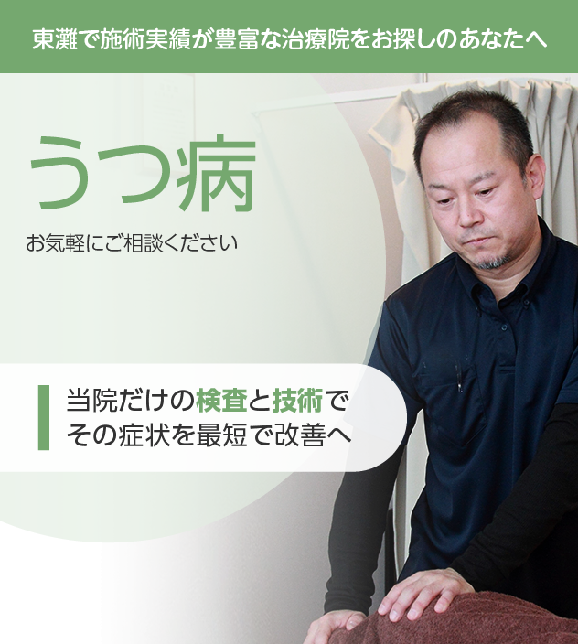 病院やほかの治療院で改善しなかったとしても諦める必要はありません。うつ病は豊富な施術実績を誇る当院にお任せください。