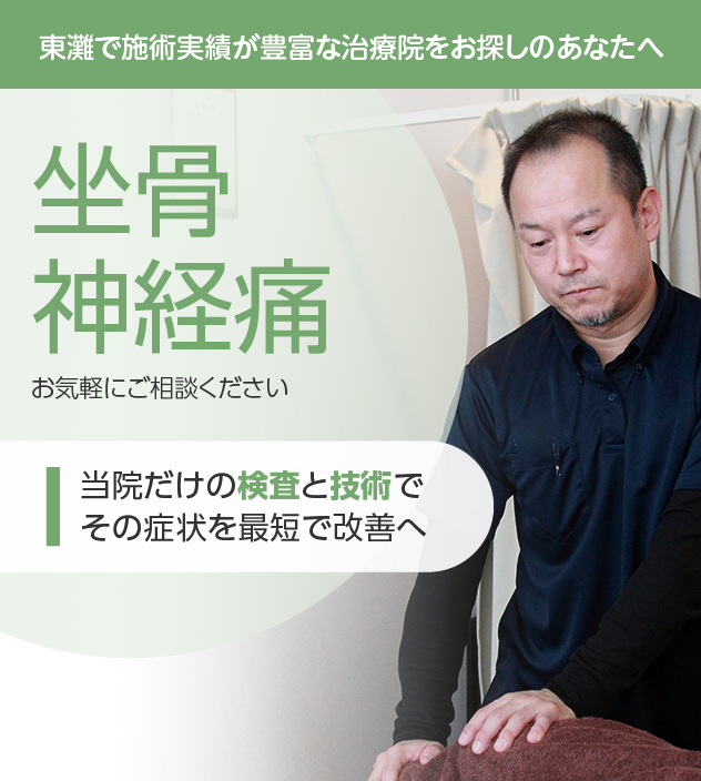 坐骨神経痛の経験者である院長が最後まで担当します。お気軽にご連絡ください。